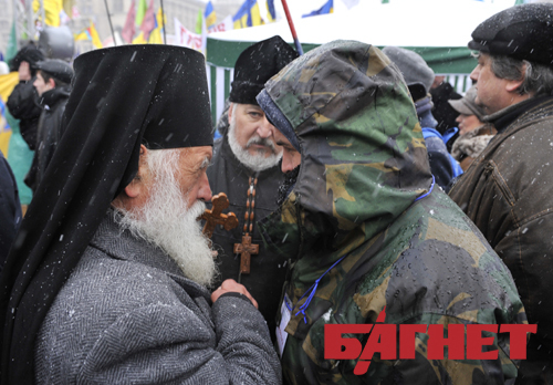 Также на площадь пришли представители церкви, чтобы благословить митингующих и благословить Украину.