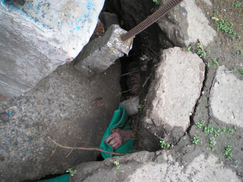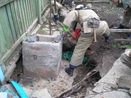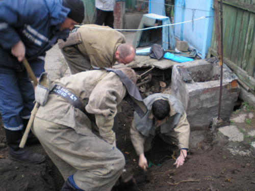 Прибывшие на вызов спасатели почти час откапывали мужчину, которого засыпало землей и накрыло плитой перекрытия колодца.