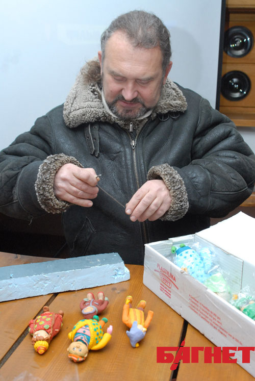 Перед тем, как вынести героев анимационного клипа Скрипки на мороз, Сашко Лирнык заворачивает их в пленку и складывает в коробку – что бы не развалились