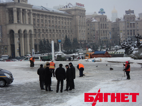 Как объяснили корреспонденту «Багнета» представители правоохранительных органов, на Майдане ведутся «оперативно-следственные работы», вследствие чего присутствие посторонних там крайне нежелательно. Поводом для проведения оперативно-следственных работ стало то, что жители палаточного городка якобы нарушили гидроизоляцию и находящийся под Майданом торговый комплекс «Глобус» затопило.