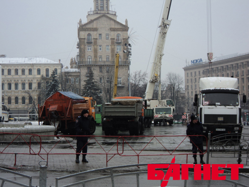 На Майдан согнано много техники. Сейчас там нет никаких следов палаточного городка. Площадь очищают от снега.