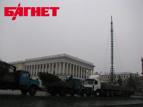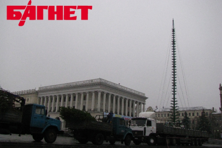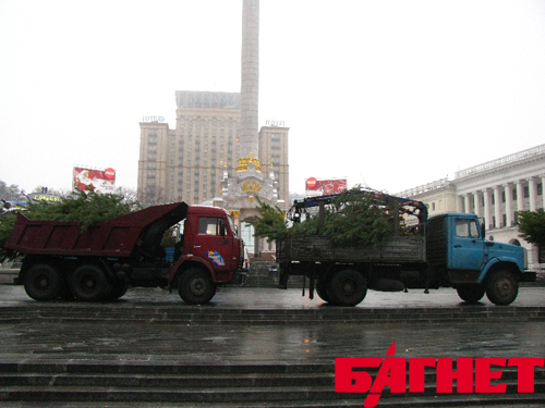 Сегодня на Майдане ставят елку. Каркас уже возведен. Вокруг Стеллы расположились грузовые автомобили, доверху забитые еловыми ветками. Присутствует и охрана, а еще металлический забор – подступиться к площади вокруг будущей новогодней красавицы сейчас нельзя. Заместитель председателя КГГА Леонид Новохатько пообещал, что «елка будет установлена вовремя».