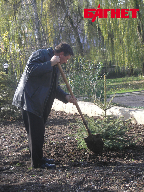 На субботнике чиновники утрамбовывали землю вокруг высаженных ими деревьев дорогими туфлями