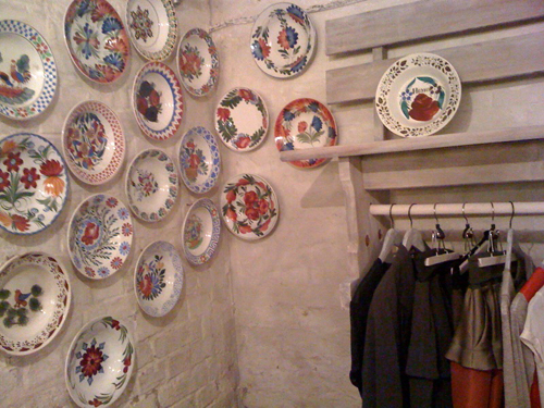 Корнер Poustovit оформлен в этническом стиле: на стенах висят так называемые «польские» тарелки, вешалка для одежды стилизована под лавку. Одежда – майки, блузы, платья, юбки и жакет в casual-стиле. Вещи, сшитые из тонкого, приятного к телу трикотажа, и шелка, хорошо сочетаются между собой. Многие из них украшены принтом с растительным орнаментом и надписью «Иванъ» - он повторяет рисунок, сделанный красками на одной из тарелок.