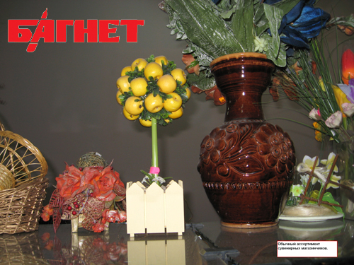 Эту фразу, где-то прочитанную, я всегда вспоминаю, когда оказываюсь в магазине подарков. Их восточная пестрота, яркость, разнообразие притягивают и отпугивают одновременно. Обычно магазины сувениров предлагают: искусственные цветы, керамические вазы, гипсовые и фарфоровые статуэтки. Здесь можно купить: бижутерию, кошельки, зонты, прихватки, мягкие игрушки, брелки. В них обязательно увидишь магниты на холодильник, календари, открытки, конверты для денег, аппликации из стразов и кожаных цветов в рамках, (их почему-то называют картинами). На полках обнаружатся завалы фотоальбомов, пластиковых фруктов, ароматизированных и простых свечей. Шкатулки, заколки, фигурки из хрусталя, салфетки, часы, чашки тоже будут претендовать на звание сувенира. Многие палатки не делают даже попытки систематизации всей этой продукции, и соседство может быть самым разным: духи рядом с кожаными сумками, ароматические палочки - с мягкими игрушками. Если на вывеске магазина значится: «украинский сувенир», то, возможно, там покупатель увидит вышитые сорочки и полотенца, «гетманские» булавы и фарфоровых казаков, - такой сувенирный ряд рассчитан на гостей издалека, цены там выше и качество лучше. Ну а обычным ассортиментом украинцы радостно одаривают друг друга.
