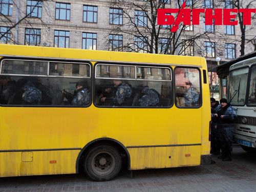 К Европейской площади уже подогнали несколько автобусов со спецназовцами и милиционерами. Охранять правопорядок.