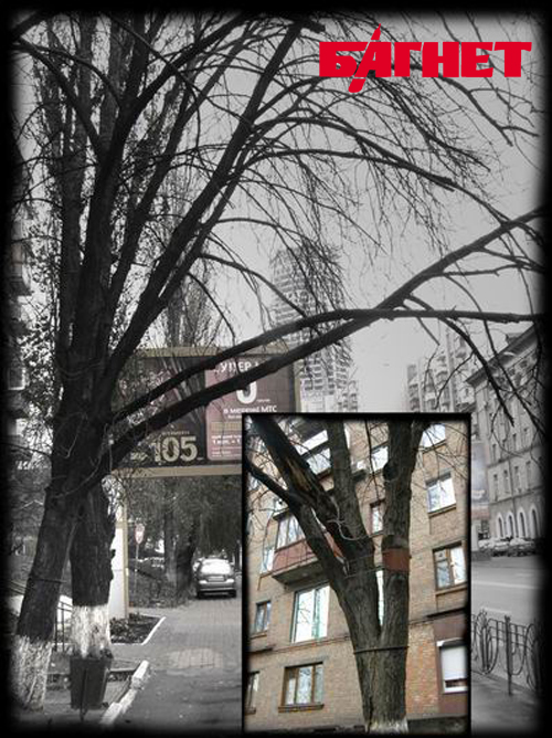 Например, в Печерском районе есть скандальный каштан, о котором в прошлом году велось столько споров. Одно столичное издание выпустило заметку о том, что это аварийное дерево несет опасность тысячам людей, которые проходят под его увесистыми ветвями. Ответ на заметку пришел от самого небезызвестного заместителя председателя райадминистрации Валерия Сандрацкого. В письме говорилось, что «с целью сбережения зеленых насаждений и во избежание падения этого дерева, проведено обследование ответственным лицом «Киевзеленстроя», трещина запломбирована, ствол стянут двумя хомутами». Проведенная работа прошла проверку прошлой суровой зимой. И дерево выстояло! Но, оказавшись вновь без листьев в этом году, оно снова приобрело устрашающий вид.