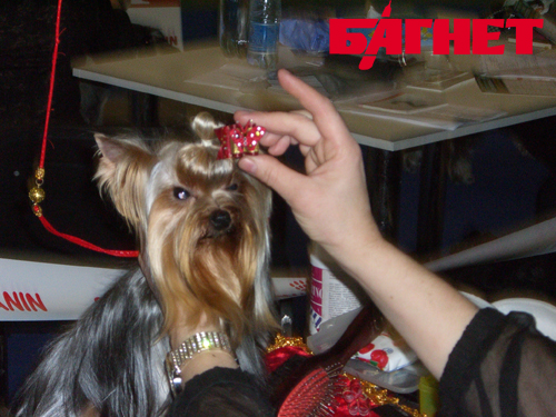 К выходу на ринг питомцев тщательно подготавливают. И если их умения и навыки тренируются годами, то внешний марафет наводят уже непосредственно перед выступлением. Хотя, некоторые четырёхлапые модницы пришли на выставку уже нарядными.