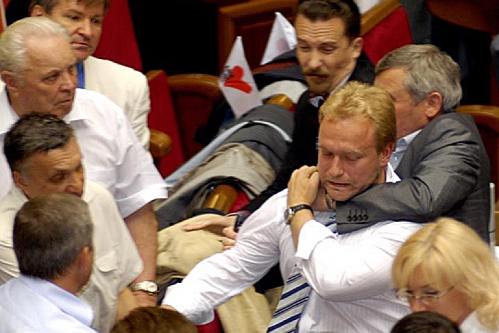 Как сообщалось в четверг около 19.20 в сессионном зале парламента произошла драка между регионалами и бютовцами, которые с утра блокировали президиум, трибуну и правительственную ложу парламента.