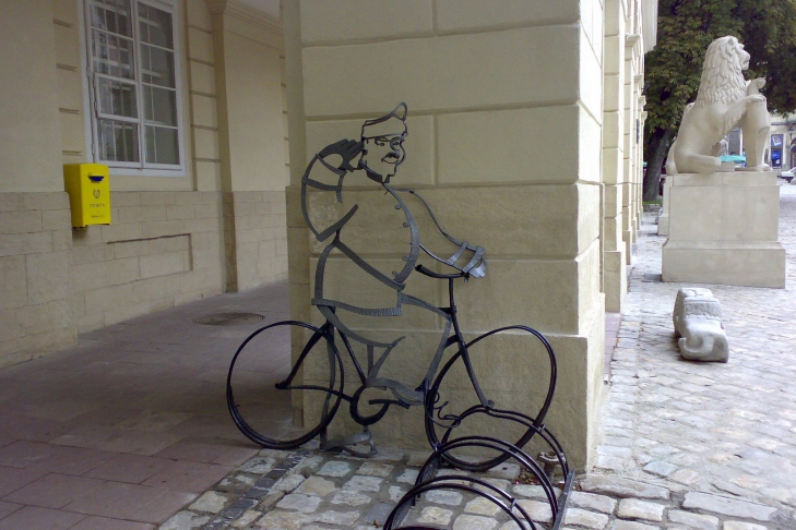 Велосипедисты решили «передать» письмо Св. Николаю через бравого солдата Швейка, памятник которому на велосипеде установлен у помещения горсовета.