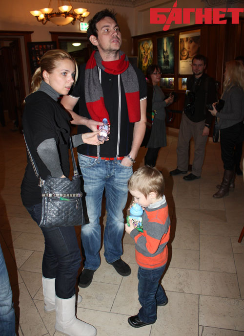 Молодняк тоже не стал пропускать столь знаменательное событие. Среди звезд не так давно вышедших из нежного возраста были замечены певица Алеша, Дантес с Олейником и группа «Gouache» в лице Ивана Розина. Когда всех пригласили в зал и многолюдная толпа в холле начала понемногу рассасываться, в дверях появился бывший ведущий канала М1, а ныне музыкант Мирослав Кувалдин с женой и детьми. Пока глава семейства со старшим сыном позировали перед камерами, супруга уговаривала сфотографироваться младшего. Но ни ее уговоры, ни просьбы Мирослава успехом так и не увенчались – обойдя вокруг отца, карапуз убежал по своим каким-то суперважным делам.