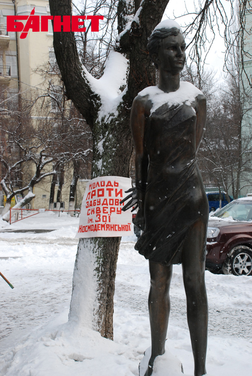 Сегодня,18 декабря, киевляне снова вышли на протесты против застройки центра города. На этот раз решили защищать сквер им. Зои Космодемьянской – на углу улиц Б.Хмельницкого и О. Гончара. Несмотря на мороз, снег и просто утро выходного дня, несколько десятков жителей близлежащих домов выразили свой протест против планов построить в сквере церковь.