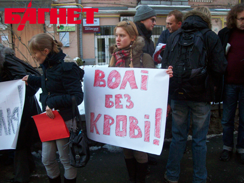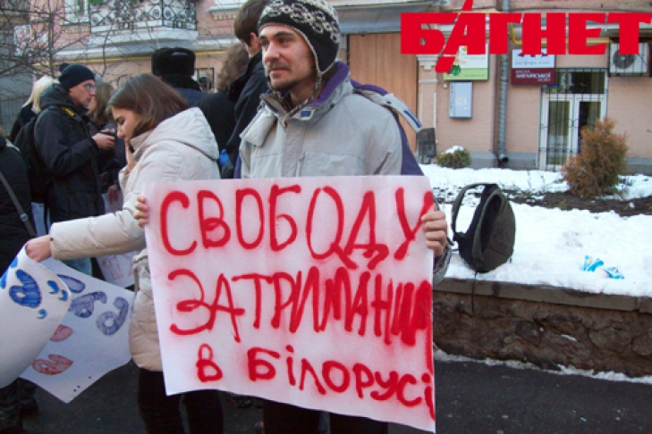 Сегодня в Киеве возле посольства Республики Беларусь состоялась акция солидарности украинских студентов, журналистов и гражданских активистов в поддержку белорусских коллег, массово задержанных во время мирной демонстрации 19 декабря.