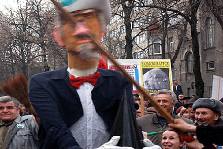 Сожженное чучело было одето во фрак и цилиндр с надписью USA. В руках Дядя Сэм держал две крылатые ракеты, сообщает газета Правда.