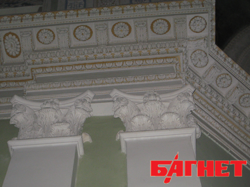 Интерьер костела украшен орнаментальной лепкой итальянских мастеров. Лепка стоила заказчикам дороже, чем само сооружение