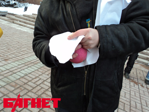 Принесли митингующие и новогодний подарок для депутатов Киевсовета - небольшую клизму. Говорят, это та же, которую когда-то ставили экс-министру образования Станиславу Николаенко. «Только Николаенко был один, а депутатов, проголосовавших за это решение, сотня. Мы хотим таким способом вылечить депутатов от алчности, от того, что они на заказ владельцев больших супермаркетов ограничивают права граждан, тех, кто любит покурить, выпить пива», - рассказывает организатор акции Вадим Гладчук. По его словам, вследствие решения работу потеряют более 200 тыс. киевлян, задействованных в работе киосков. «Будем ловить депутатов и ставить им клизму без вазелина», - шутит Гладчук. Он обещает, что в последующем акции станут масштабнее, а после Нового года под КГГА активисты будут приходить ежедневно.