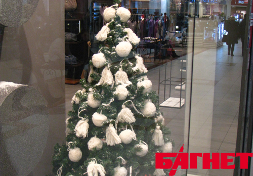 В витрине одного из киевских бутиков стоит нарядная и красивая елочка. А если присмотреться, вместо новогодних игрушек на ней… помпоны из ниток. Чем не идея и для нас, рядовых граждан? Вместо того, чтобы покупать китайские, не всегда экологически чистые новогодние украшения, можно срезать помпончики со старых шапочек, или же сделать новые из ниток и украсить ими елку. Главное – подойти к делу с фантазией и вдохновением.