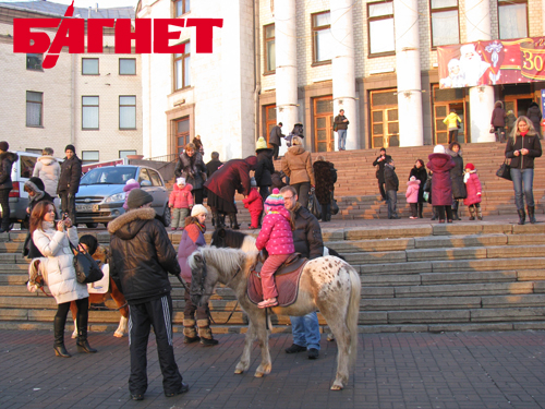 Родителям приходилось идти на уступки и платить по 20 грн. за 5 минут катания. Как тут откажешь ребенку, если праздники на дворе. Только вот и пони, и лошади не приезжие, не цирковые, а местные.