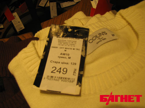 После новогодних праздников большинство киевских бутиков разукрасили свои витрины объявлениями о распродажах. Так и один популярный бутик на Крещатике тоже предлагает покупателям заманчивую скидку «-50%». Но стоит присмотреться к ценникам, и закрадываются небезосновательные подозрения в недобросовестности «распродажных акций». Мало того, что на ценниках заново отпечатывают «старую» и новую цену – а могли бы просто зачеркнуть старую и рядом написать новую – так еще и к первоначальной цене «скидку» приплюсовывают, вместо того чтобы отнимать.