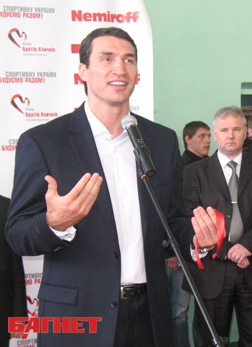 Чемпион мира по версиям IBF, IBO и WBO Владимир Кличко открыл в Переяславе-Хмельницком реконструированный спортзал и боксерский ринг