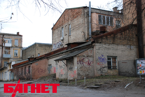 А вот этот памятник архитектуры, доходный дом 1897 года, находится напротив главного входа в Конституционный суд Украины – почти на углу улиц Горького и Жилянской. Степень разрушений, очевидно, скоро позволит вычеркнуть его из списка памятников, снести и, разумеется, выделить участок под застройку. До НСК «Олимпиский» - меньше километра.