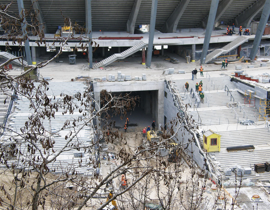 Тем временем, как можно видеть на фото, стадион все больше приобретает очертания.