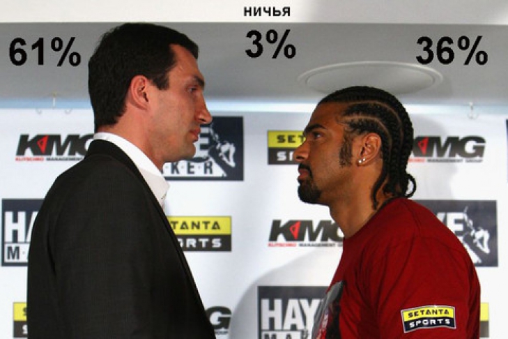Владимир Кличко (61%) - ничья (3%) - Дэвид Хэй (36%)