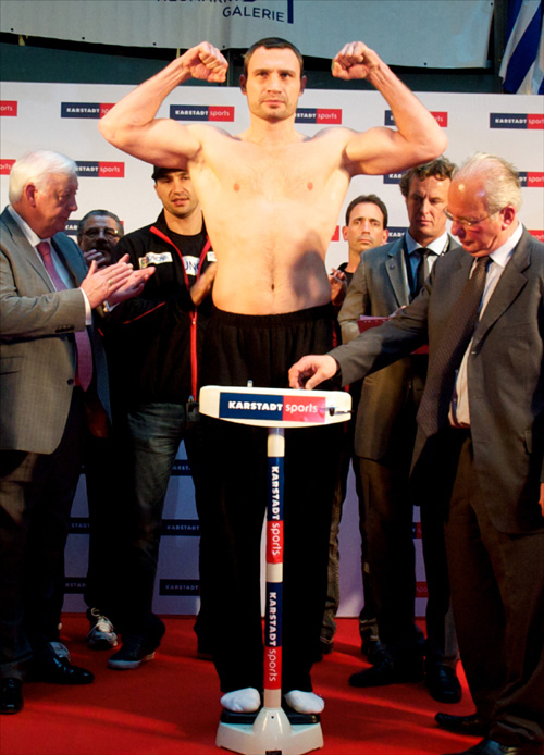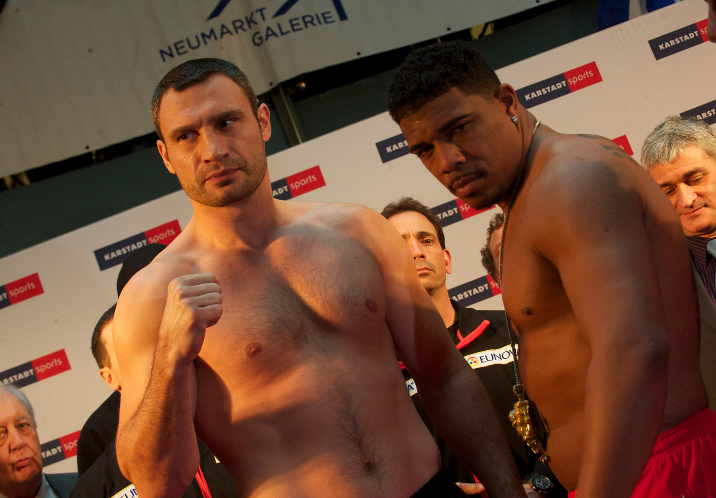 В пятницу, 18 марта, в немецком Кельне состоялась процедура официального взвешивания участников субботнего боксерского шоу, в главном поединке которого чемпион мира по версии WBC Виталий Кличко будет защищать свой титул в бою против кубинского претендента Одланьера Солиса.