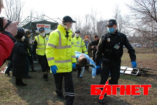 Сегодня, 1 апреля, на территории Киевской городской больницы скорой помощи (БСМП) гремели взрывы, визжали сирены и стонали раненные. Это не шутка: состоялись украино-польские учения в рамках подготовки к ЕВРО-2012. «Легенда» была такая: в фан-зоне стадиона произошел теракт: взрыв с использование неизвестного отравляющего вещества. Пострадали сорок человек, шестнадцати потребовалась госпитализация. Статистов из медучилищ вымазали красной краской и «разложили» на лужайке во внутреннем дворе больницы, а дальше себя проявили спасатели и медики.