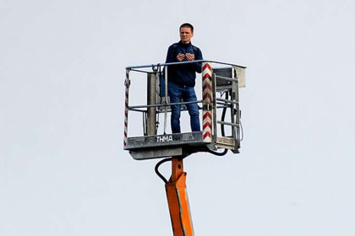 Болельщик польского футбольного клуба "Шленск" (Вроцлав) арендовал подъемный кран для просмотра матча любимой команды. Фотография фаната размещена в Twitter военных.
