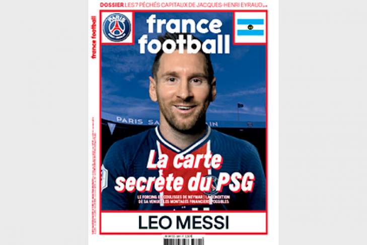 Капитан каталонской "Барселоны" Лионель Месси появился на обложке журнала France Football в форме клуба "Пари Сен-Жермен" (ПСЖ). Изображение доступно на сайте издания.