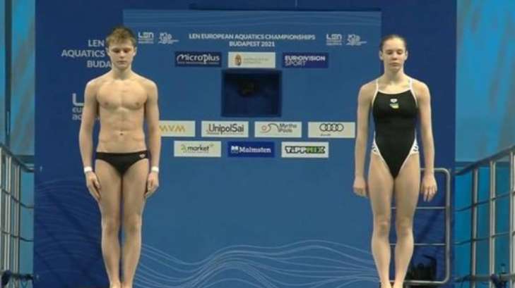 Во вторник, 11 мая, сборная Украины в составе 15-летних Алексея Середы и Ксения Байло стала чемпионом Европы в смешанных прыжках с 10-метровой вышки.