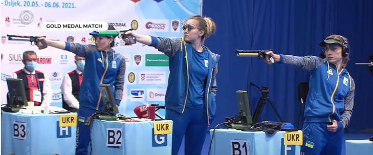 Женская сборная Украины по стрельбе из пневматического пистолета на дистанции 10 метров завоевала золотые медали на чемпионате Европы в хорватском Осиеке. Об этом сообщает Европейская конфедерация стрелкового спорта.