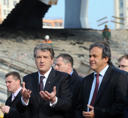 Президент УЕФА Мишель Платини посетил НСК «Олимпийский», который сейчас активно реконструируется. Футбольного чиновника сопровождал президент Украины Виктор Ющенко. Оба президента ознакомились с ходом работ на главном стадионе Евро-2012