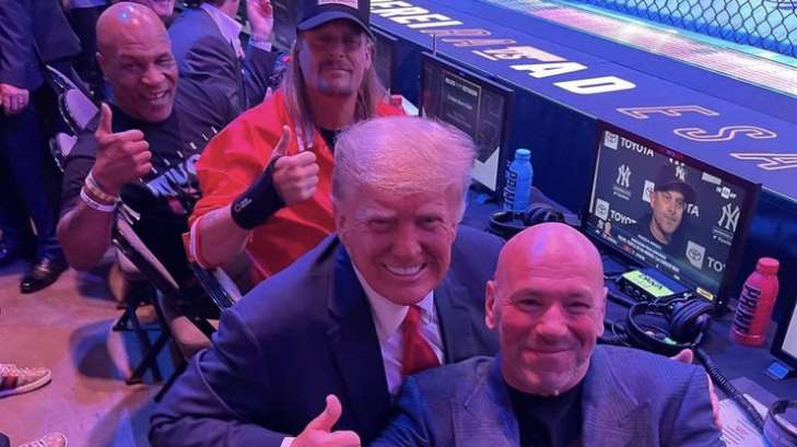 Трамп сидів на турнірі поруч із легендарним боксером Майком Тайсоном і президентом UFC Даною Уайтом. За інформацією видання, експрезидента США та главу UFC пов'язує давня дружба.