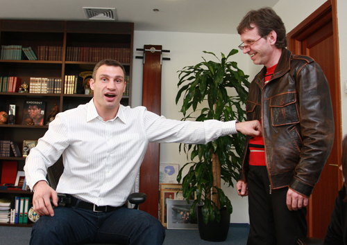 Виталий Кличко шутил. Много и со вкусом. Для начала сказал, что фотограф Ольга Якимович напоминает ему Пеппи Длинный Чулок, и ей это явно понравилось. Потом чемпион мира в супертяжелой весовой категории показывал на одном из авторов этого интервью, как должен действовать рефери во время боя. И вообще, весело проходило. Смеялись много. Но начали провокативно.