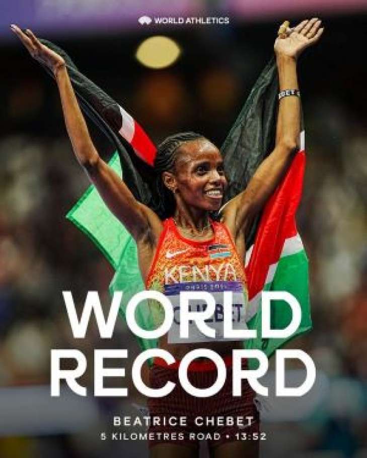 Кенійка Беатріс Чебет встановила новий світовий рекорд у бігу на дистанцію 5 км на шосе. 24-річна Чебет перемогла на змаганнях у Барселоні з результатом 13 хвилин 52 секунди.