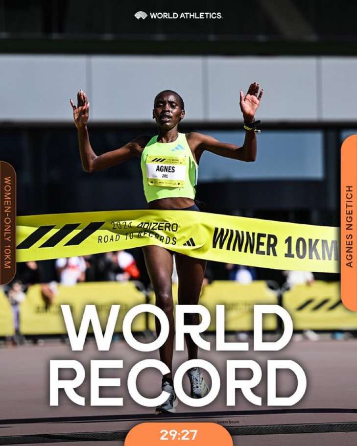 Кенійка Агнес Нгетич встановила новий світовий рекорд у бігу на дистанції 10 км на шосе (для забігів, де брали участь лише жінки).