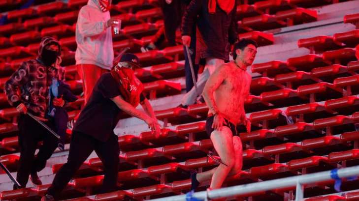 Чилійці підпалили сидіння та почали кидати предмети у вболівальників господарів із верхнього гостьового сектору. Частину фанів вивели, але сутички тривали. Деякі вболівальники "Індепендьєнте" побігли бити небагатьох чилійців, що залишилися в секторі, один з яких упав з верхнього ярусу.