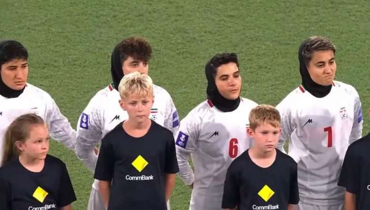 Коли збірні зібралися для виконання національних гімнів перед початком матчу, камери показали іранську команду - гравці та тренер слухали мелодію мовчки, не вимовляючи слова гімну. Тренер збірної у цей момент посміхалася.