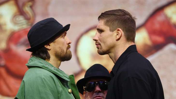 Чемпион мира по версиям WBA, WBC и IBF в супертяжелом весе Александр Усик и нидерландский кикбоксер Рико Верховен устроили битву взглядов перед чемпионским поединком 23 мая.