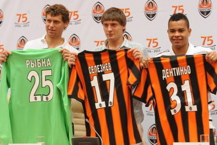 Главный тренер «Шахтера» Мирча Луческу представил журналистам новичков и вручил им клубные футболки, сообщает официальный сайт клуба. Голкипер Александр Рыбка будет выступать в свитере с 25-м номером, бразилец Дентиньо – в футболке с номером 31, а за форвардом Евгением Селезневым закреплен 17-й номер.