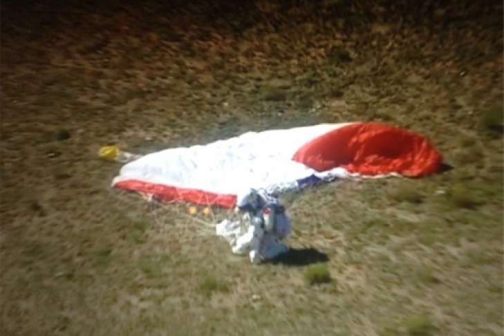 Полет продолжался около десяти минут, из них пять парашютист находился в свободном падении, а на высоте 1,5 километров над Землей раскрыл парашют.
