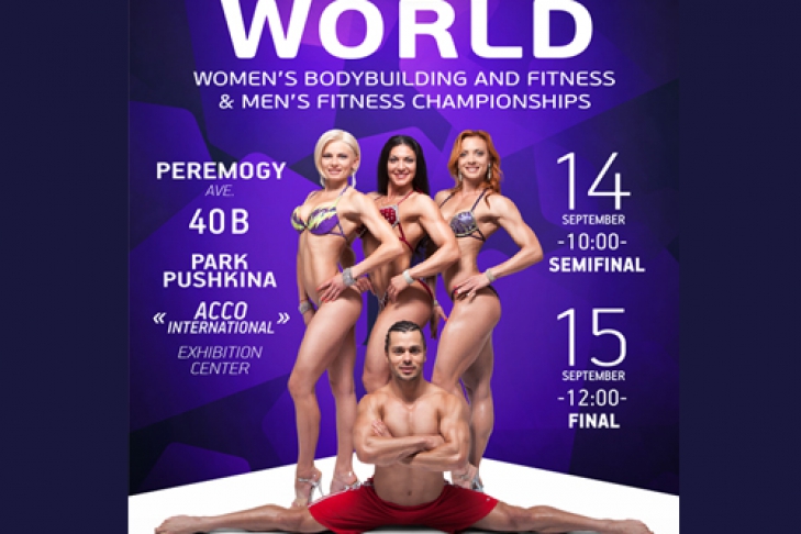 14-15 сентября в Киеве пройдет чемпионата мира по женскому бодибилдингу, фитнесу, бодифитнесу, бикини, атлетик фитнесу, физик и мужскому фитнесу, атлетик фитнесу и физик. На чемпионат приедут 300 спортсменов из 40 стран мира.