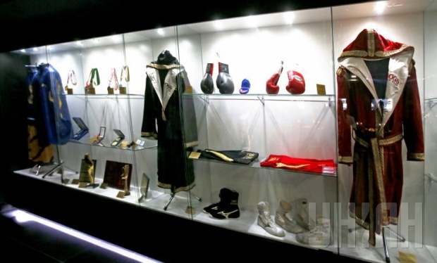 Братья Кличко передали музею свои чемпионские пояса, халаты, боксерские шорты, в которых проводили важнейшие бои в своей профессиональной боксерской карьере - всего около 70 экспонатов.