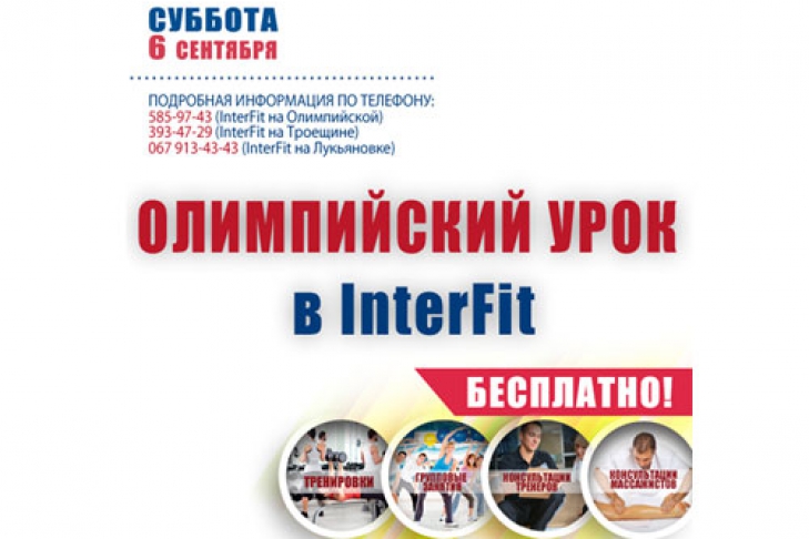 В субботу, 6 сентября, самая спортивная сеть фитнес-клубов InterFit приглашает всех на Олимпийский урок. Вход свободный!