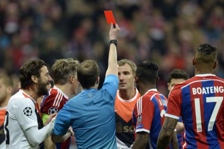 Игрок "горняков" увидел перед собой красную карточку от шотландского арбитра Уильяма Коллама уже на 3-й минуте встречи за фол на Марио Гетце.