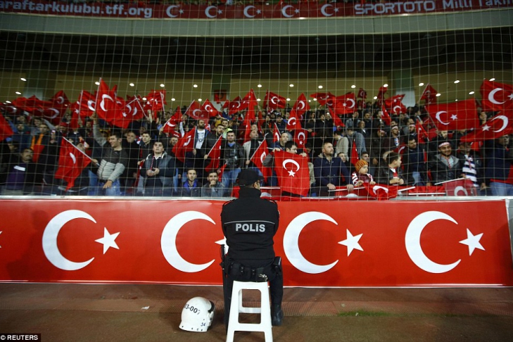 Помимо этого, на стадионе в Стамбуле турецкие фанаты распевали песни в честь президента Реджепа Эрдогана.