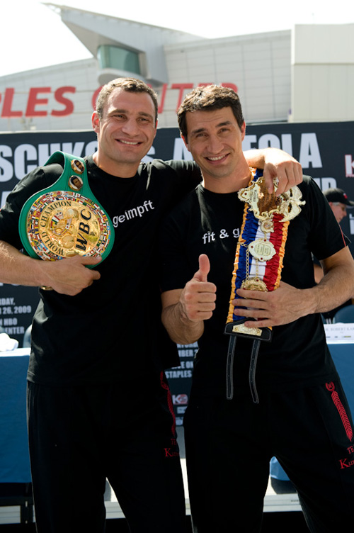 В Лос-Анджелесе на Nokia Plaza Live чемпион мира по версии Всемирного боксерского совета (WBC) Виталий Кличко и претендент на титул мексиканский боксер Крис Арреола провели пресс-конференция, которая стала последней перед поединком, который состоиться 26 сентября, сообщает пресс-служба братьев Кличко.