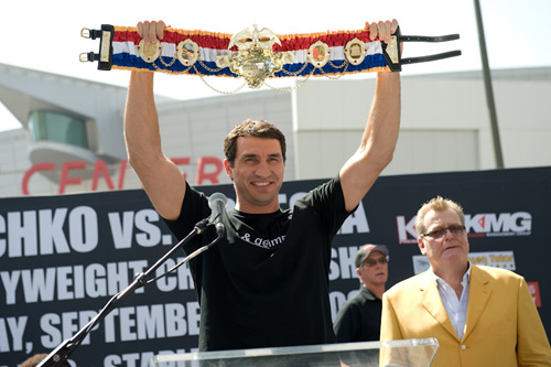 Кроме того, на пресс-конференции чемпиону мира по версиям WBO, IBF и IBO Владимиру Кличко был вручен пояс авторитетного журнала The Ring, который он завоевал в поединке против узбекского боксера Руслана Чагаева в июне этого года.